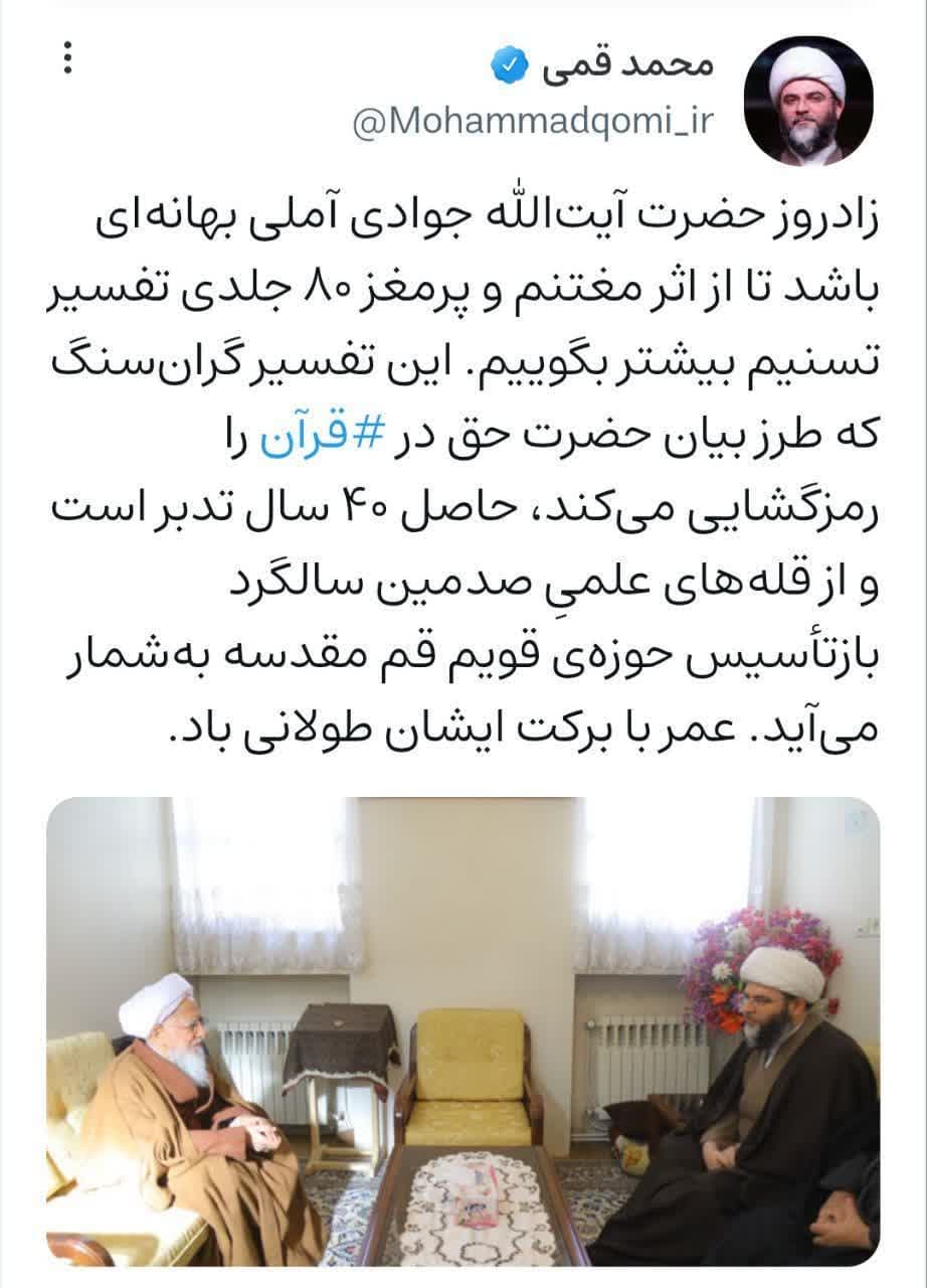 ۱۵ اردیبهشت | حجتالاسلام محمد قمی در صفحه شخصی خود نوشت؛