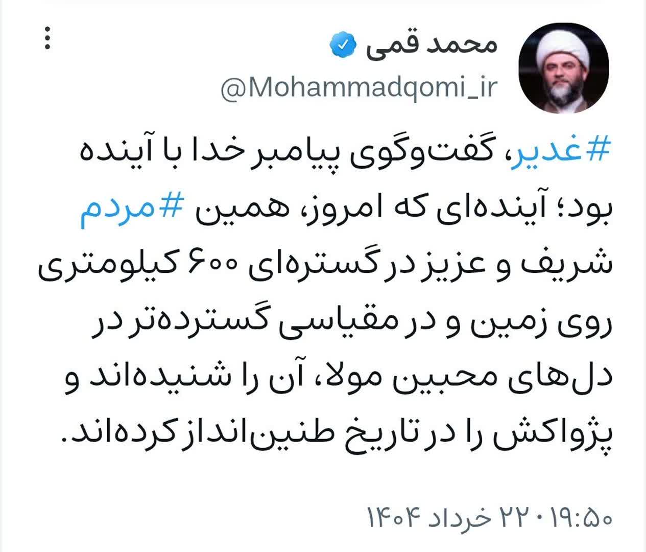 ۲۲ خرداد | حجت‌الاسلام قمی در صفحه شخصی خود نوشت؛