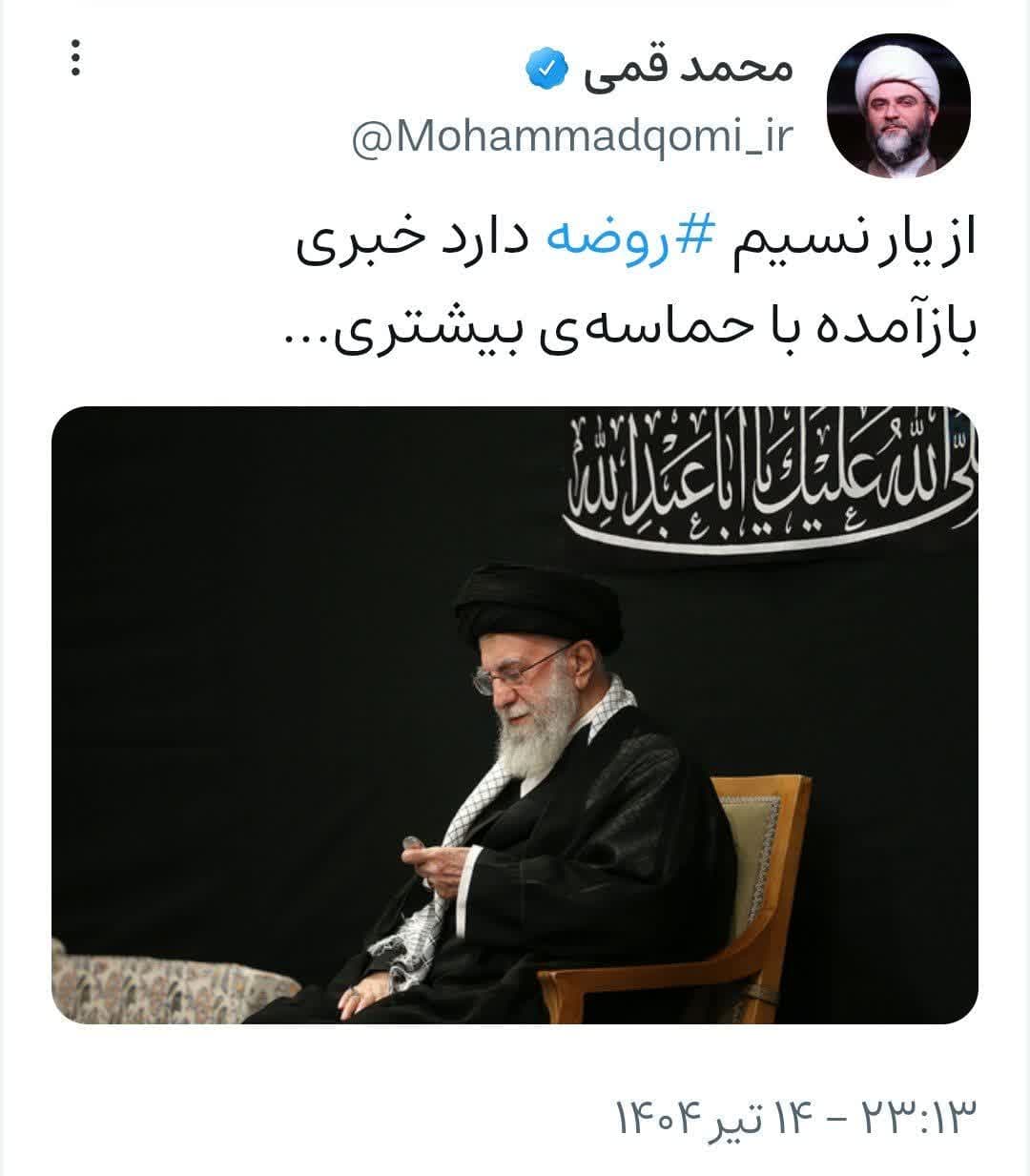 ۱۴ تیر | حجت‌الاسلام قمی در صفحه شخصی خود نوشت؛