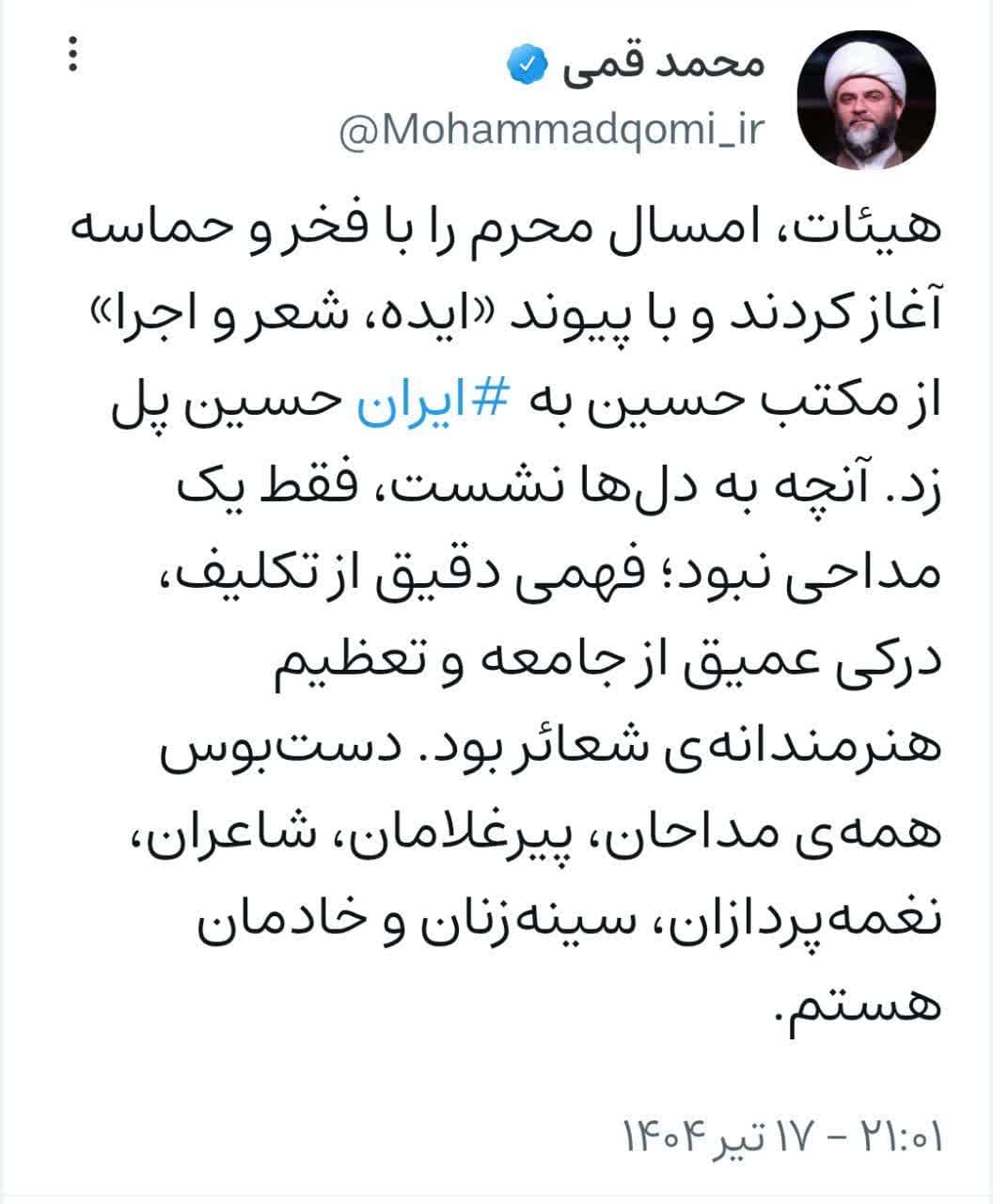 ۱۷ تیر | حجتالاسلام قمی در صفحه شخصی خود نوشت؛