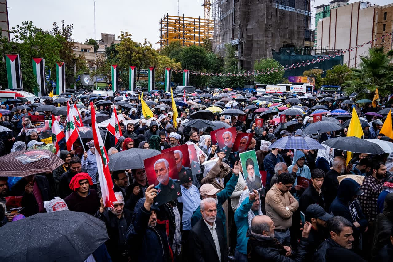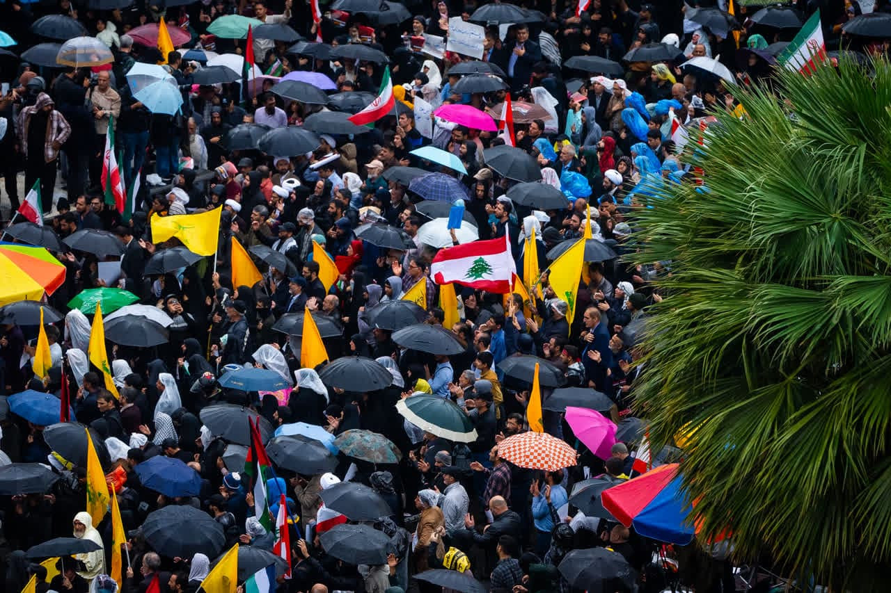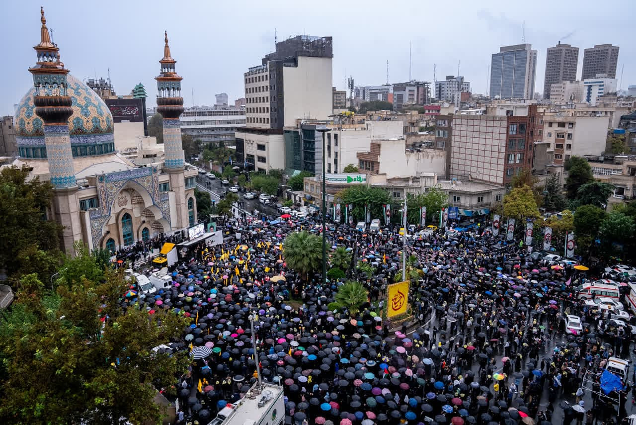 غروب امروز میدان فلسطین غمگین‌تر از روزهای دیگر پاییز بود؛ غمگین‌تر و سردتر از همیشه. کاش می‌شد چشم‌های اشکبار و قلب‌های زار را روایت کرد. ولی سید از آن بالا می‌دید... تصاویر تجمع امروز را می‌بینید در میدان فلسطین؛ باران و غم و اشک در فراق سید مقاومت.
