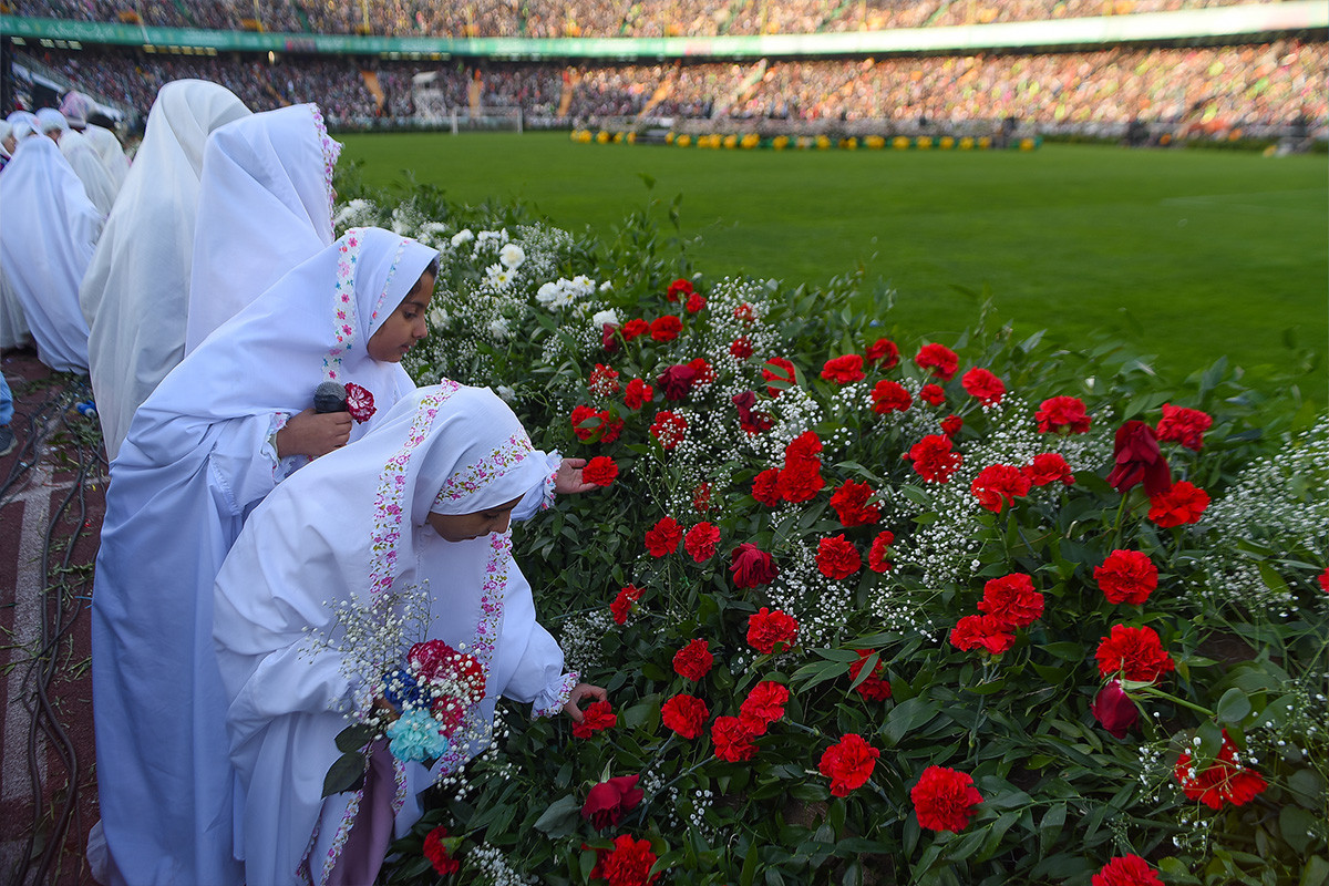“伊玛目哈桑追随者”古兰经集会今天从۱۵:۳۰到۱۸:۳۰在阿扎迪体育场盛大举行,家人热情参与其中。